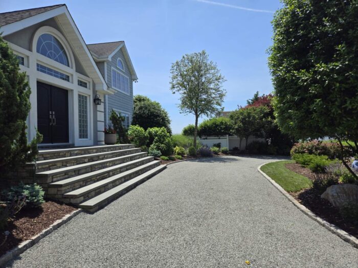 The result is a driveway with a natural, stone-like appearance that offers strong traction and a rustic visual appeal. Because of the crushed stone surface, tar-and-chip driveways often blend well with rural properties, residential neighborhoods, and commercial access roads.